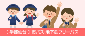 大好評!「学都仙台 市バス・地下鉄フリーパス」 学生・生徒・児童等を対象に,市バスや地下鉄の全線で乗り降り自由な通学定期券を販売しています。