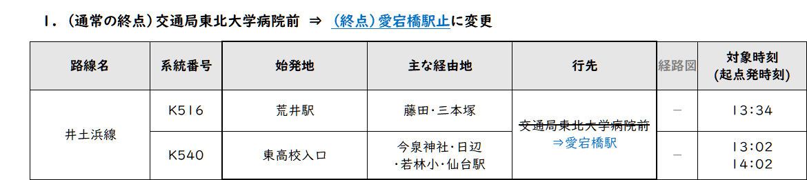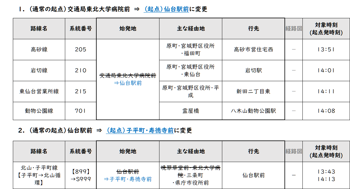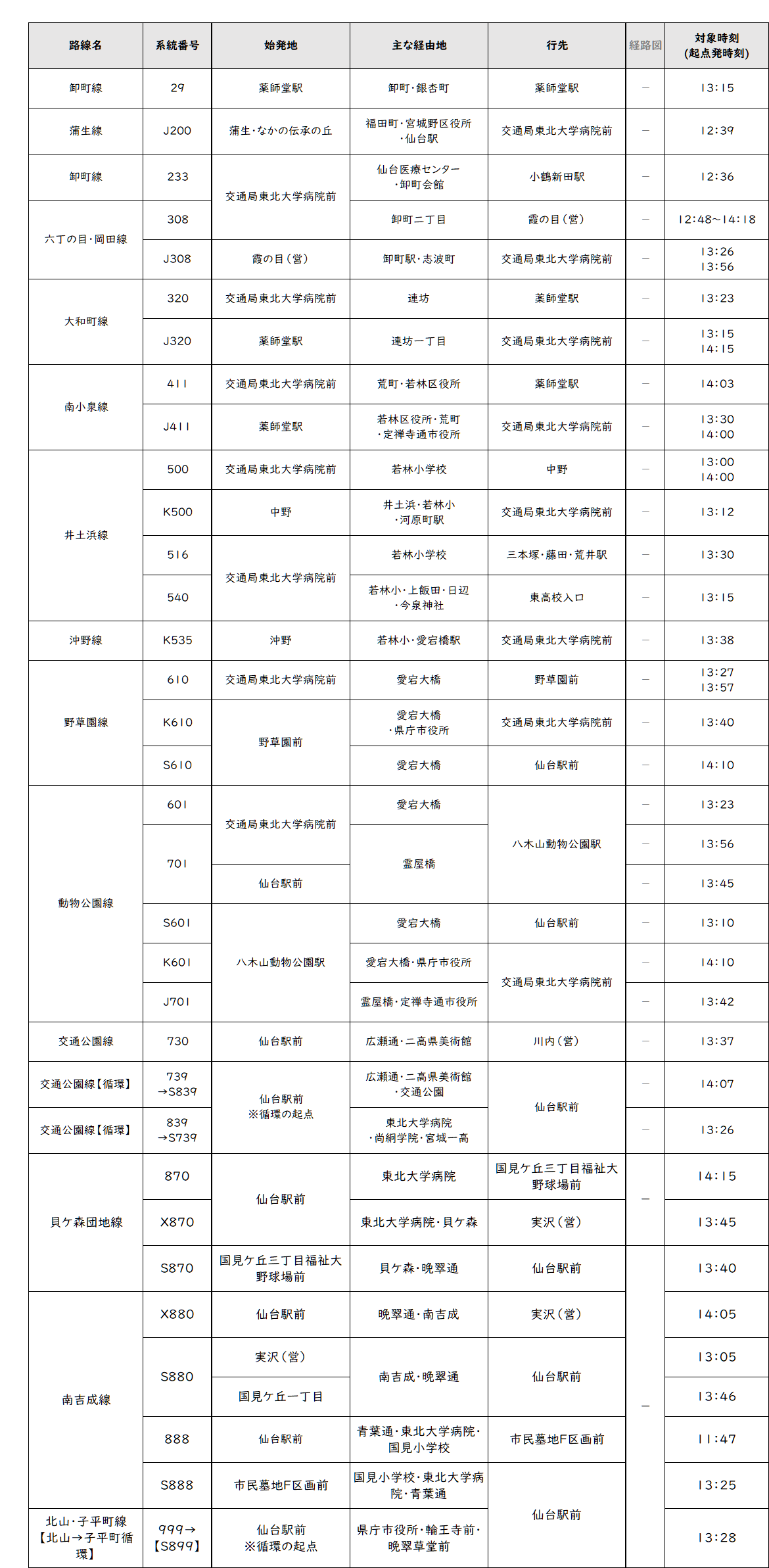 令和7年11月23日(日)の「第45回全日本実業団対抗女子駅伝競走大会」の開催に伴い、市営バス及びるーぷる仙台の一部の路線で運休や経路変更等を行います。