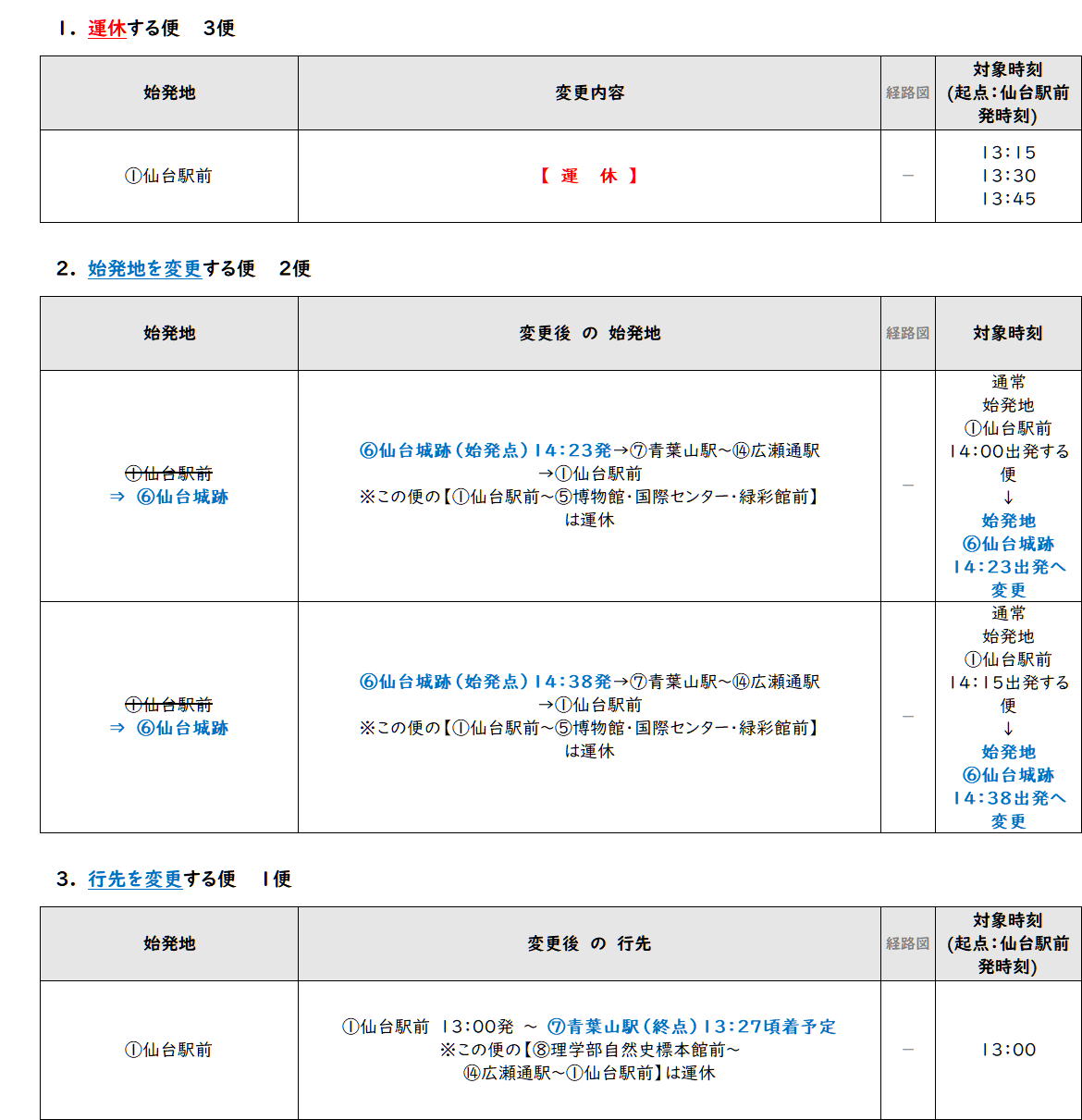 ■ ⑤るーぷる仙台 運休、始発地ならびに行先変更する便 計6便