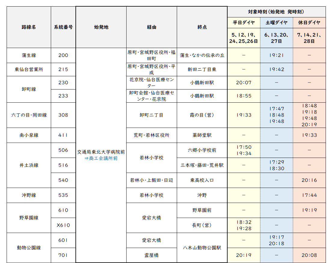 | 【対象便】 | (通常の始発地)交通局東北大学病院前 | |