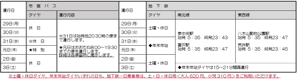 〇初詣による交通渋滞が予想されるため、[ 運休 ] します。