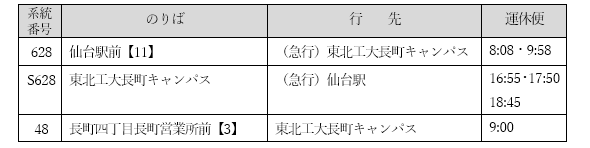冬季学校休校に伴い、停留所時刻表の下線付き時刻便を運休いたします。①仙台大明成高校関係