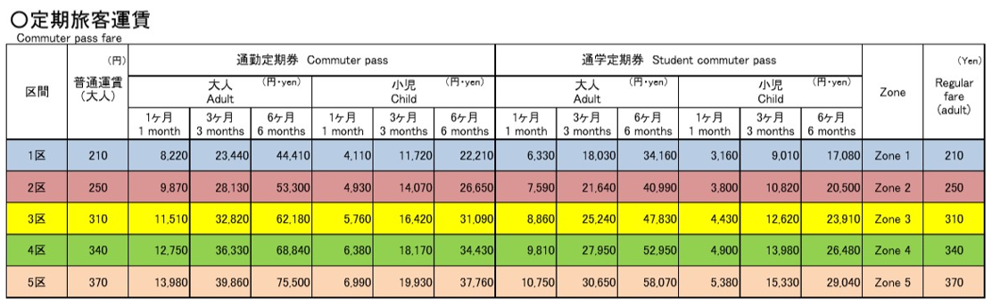 | 運賃 | 1ヵ月 4,870円 3ヵ月 14,610円 6ヵ月 29,220円 |