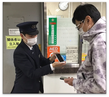 日本語による案内が難しい外国人のお客さまに対する案内サービスとして、全駅に配置しているタブレットの翻訳アプリによる対応を実施しています。
