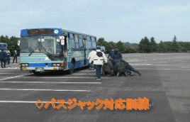 ②仙台市交通局バスジャック対応訓練の実施グランディ21第7駐車場において宮城県警察と合同で、バスジャックが発生した際において行うべき、乗客等の 安全確保、情報収集伝達、乗客の救護等の訓練を実施しました。