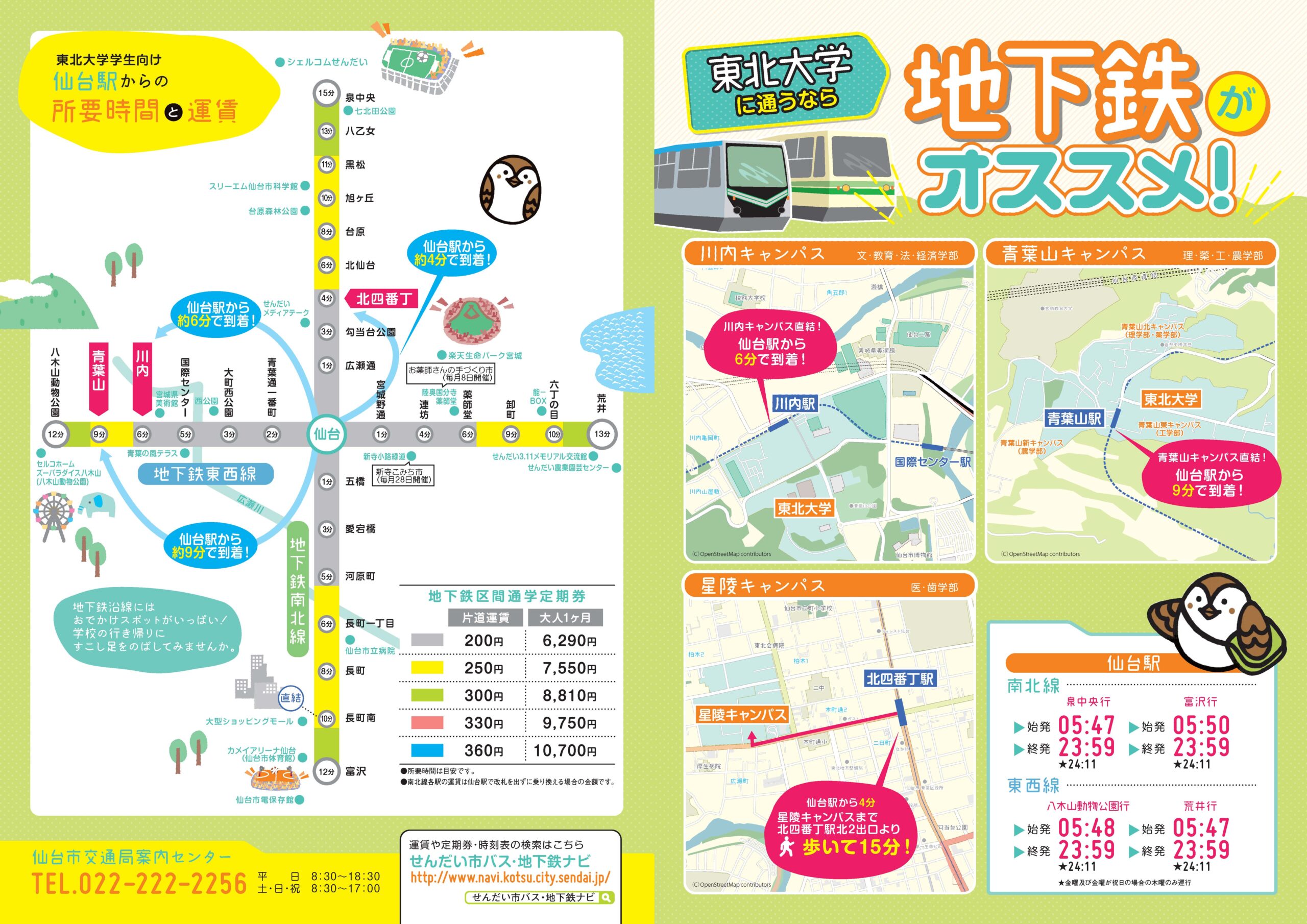 東北学院大学五橋キャンパスの新設に伴い、東北学院大学にもご協力いただきながら、学都仙台フリーパスの販売促進パンフレットを作成しました。令和4年度新入学生向けとしては、新入学生向けオリエンテーションで配布や学内での配架のほか、入学者向けの学内ホームページにも掲載いただきました。