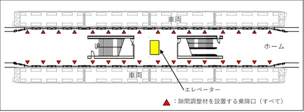 南北線の車両乗降口は、1両当たり4か所、4両編成ですので片線当たり16か所ありますが、すべての乗降口で隙間を縮小いたします。