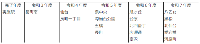 令和3年度から工事を始め、令和7年度末までに南北線の全17駅で工事を実施する予定です。