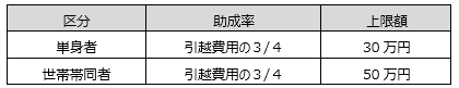 以下の区分ごとに,助成対象者又は同一世帯内の方が引越業者に支払った引越費用を助成します。(消費税除く)
