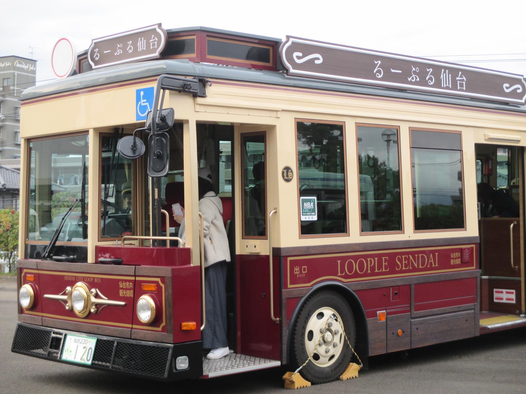普段は仙台の街を走る市バス・るーぷる仙台と記念撮影!