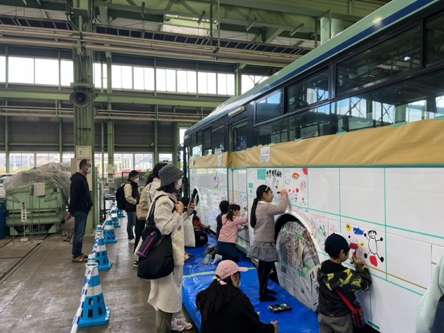 仙台市交通局では、平成29年度から車両基地を会場に「バス・ちか祭り」を開催しています。今年度は「バス・ちか探検ツアー」として、抽選に当選された方約600名をご招待し、富沢車両基地にて開催しました。