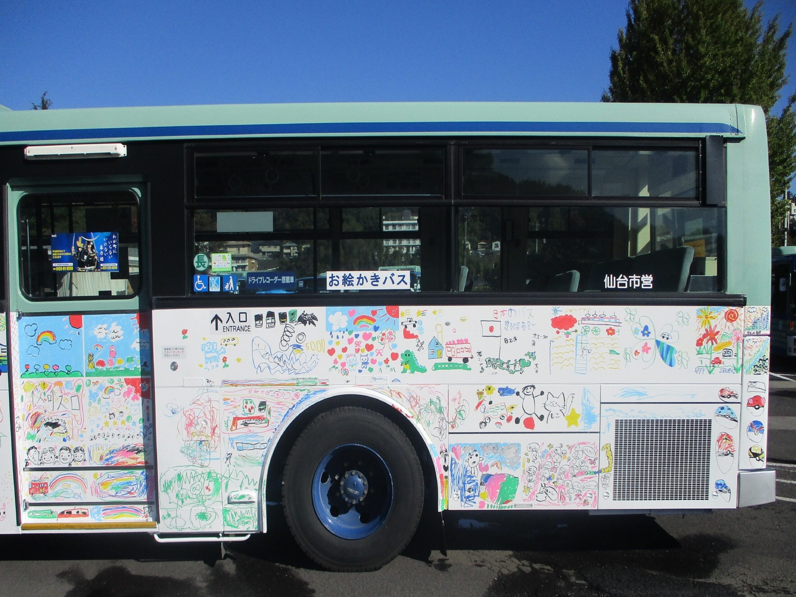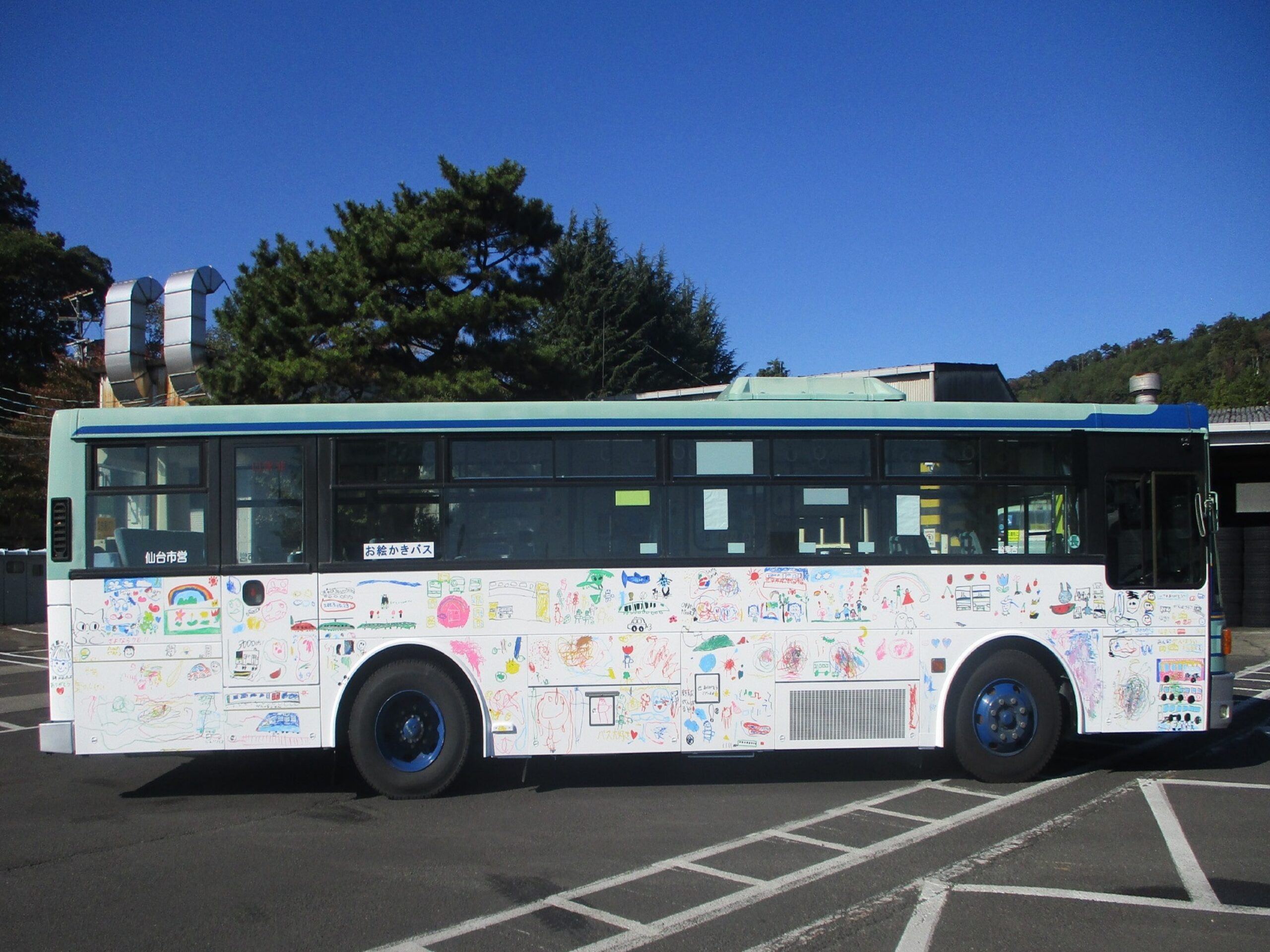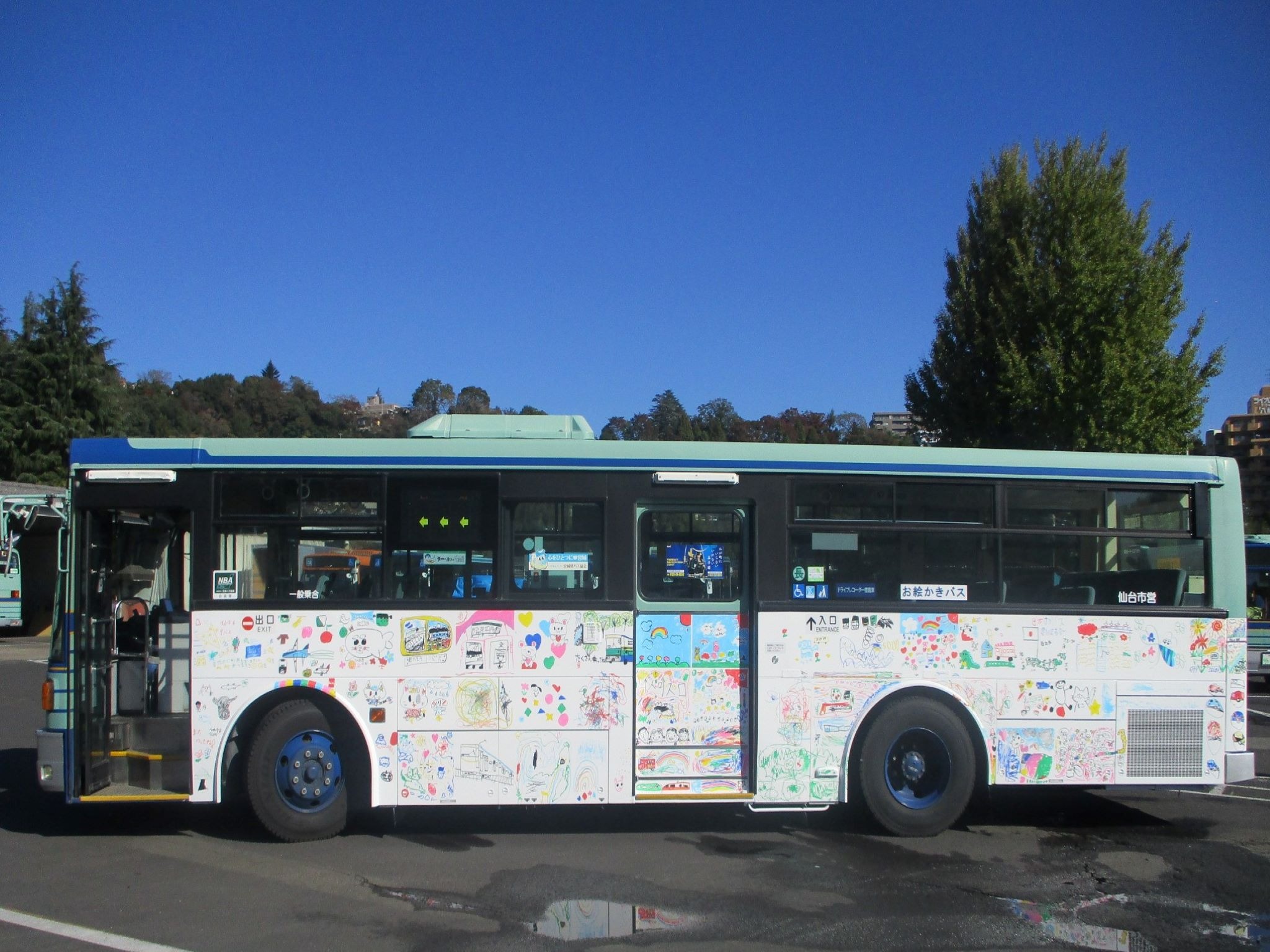 みなさんがお絵描きしてくれたバスは、10月31日(火)から仙台市内の路線を運行しています!
