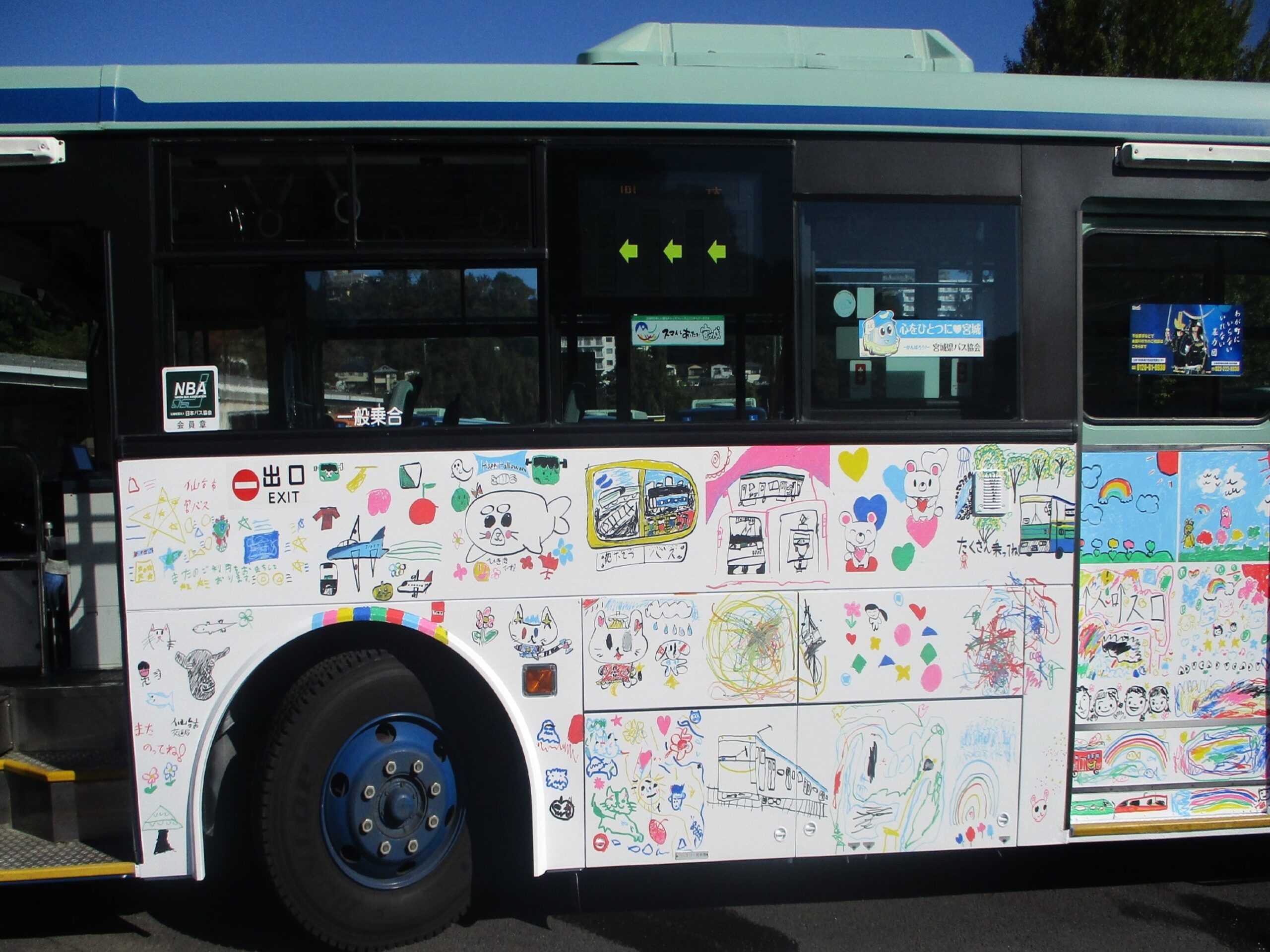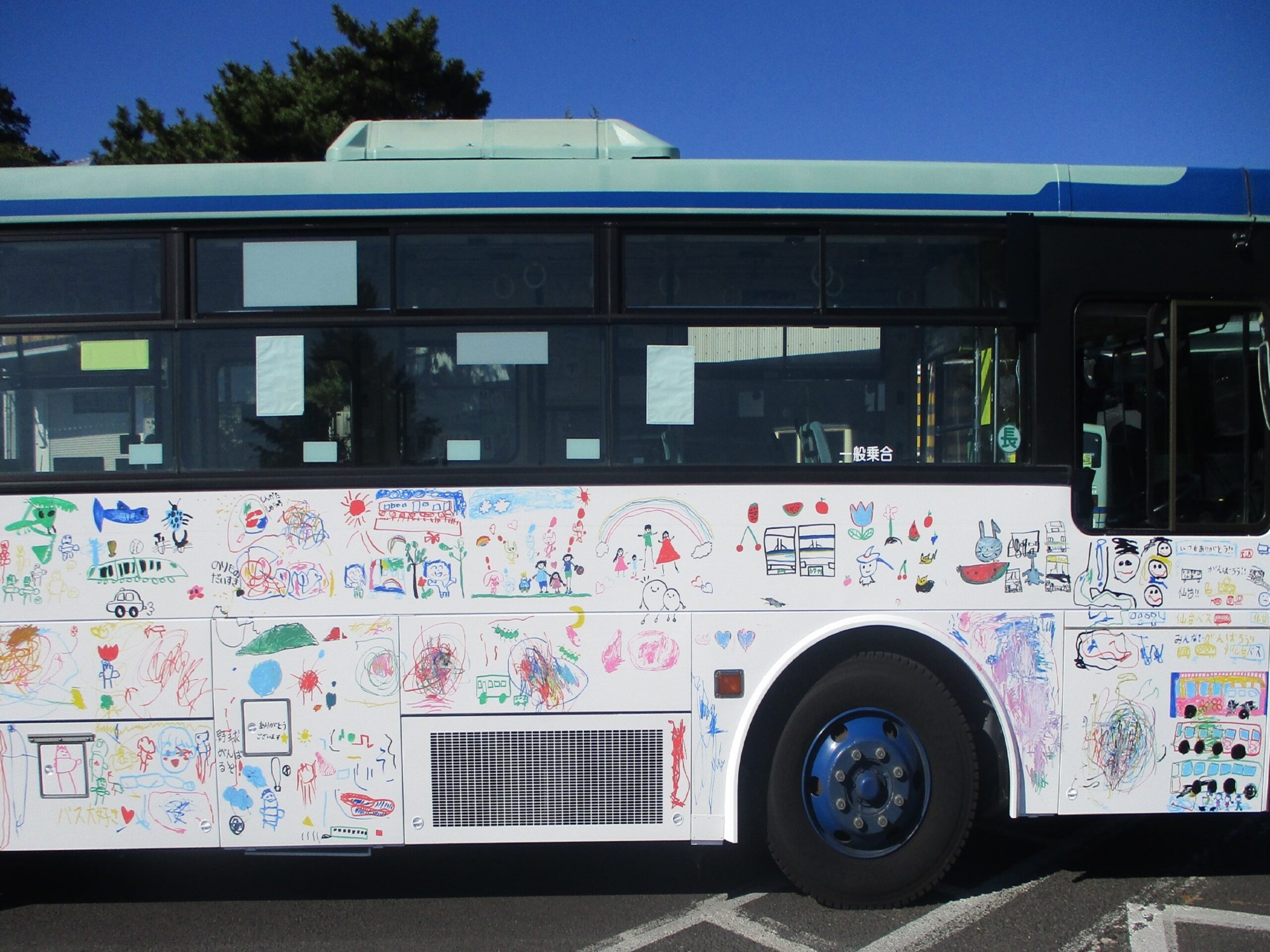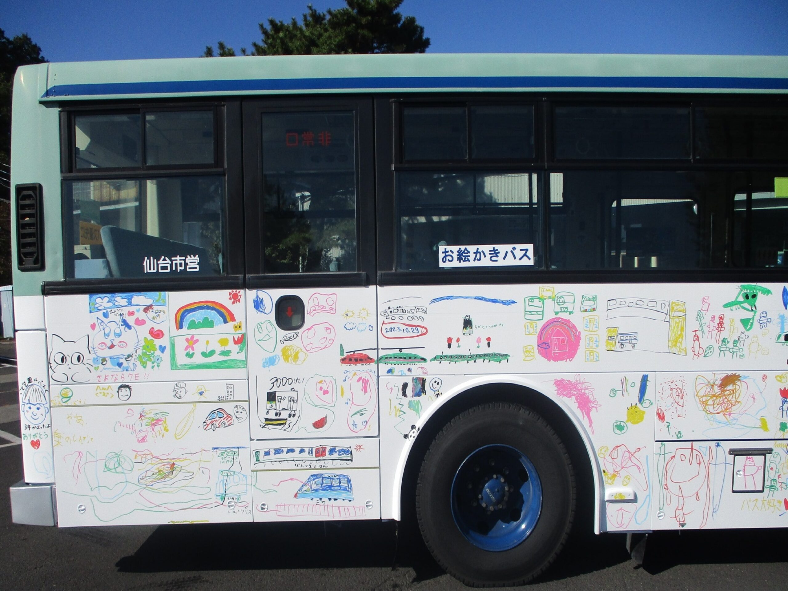 みなさんがお絵描きしてくれたバスは、10月31日(火)から仙台市内の路線を運行しています!