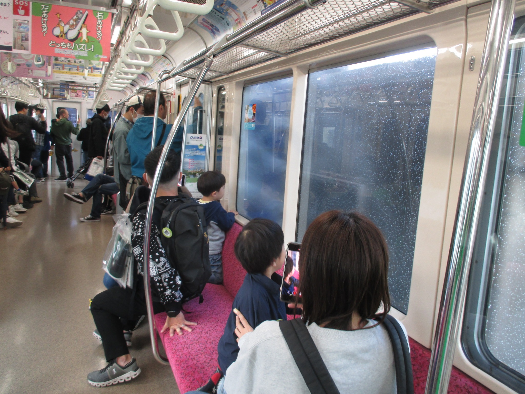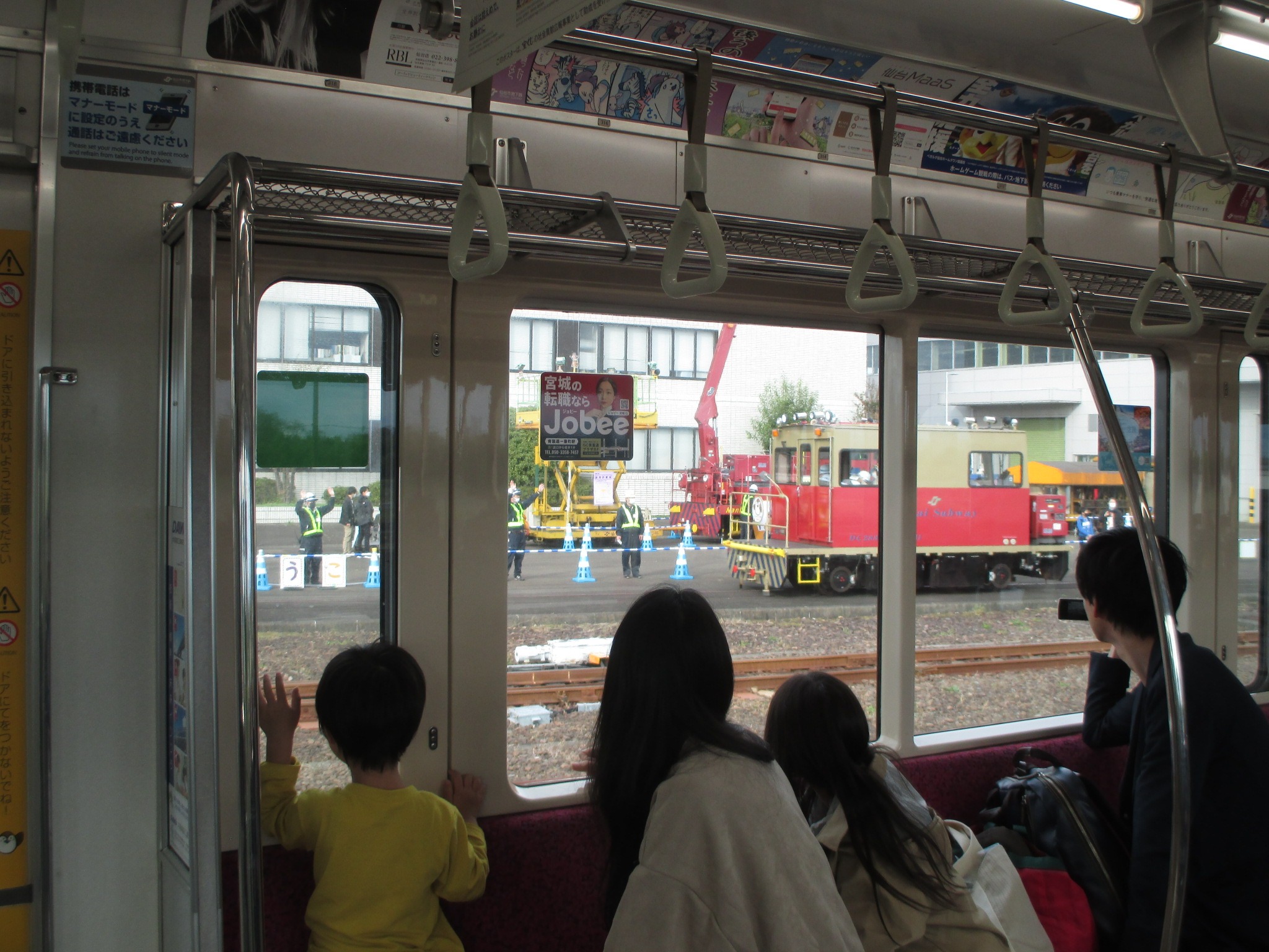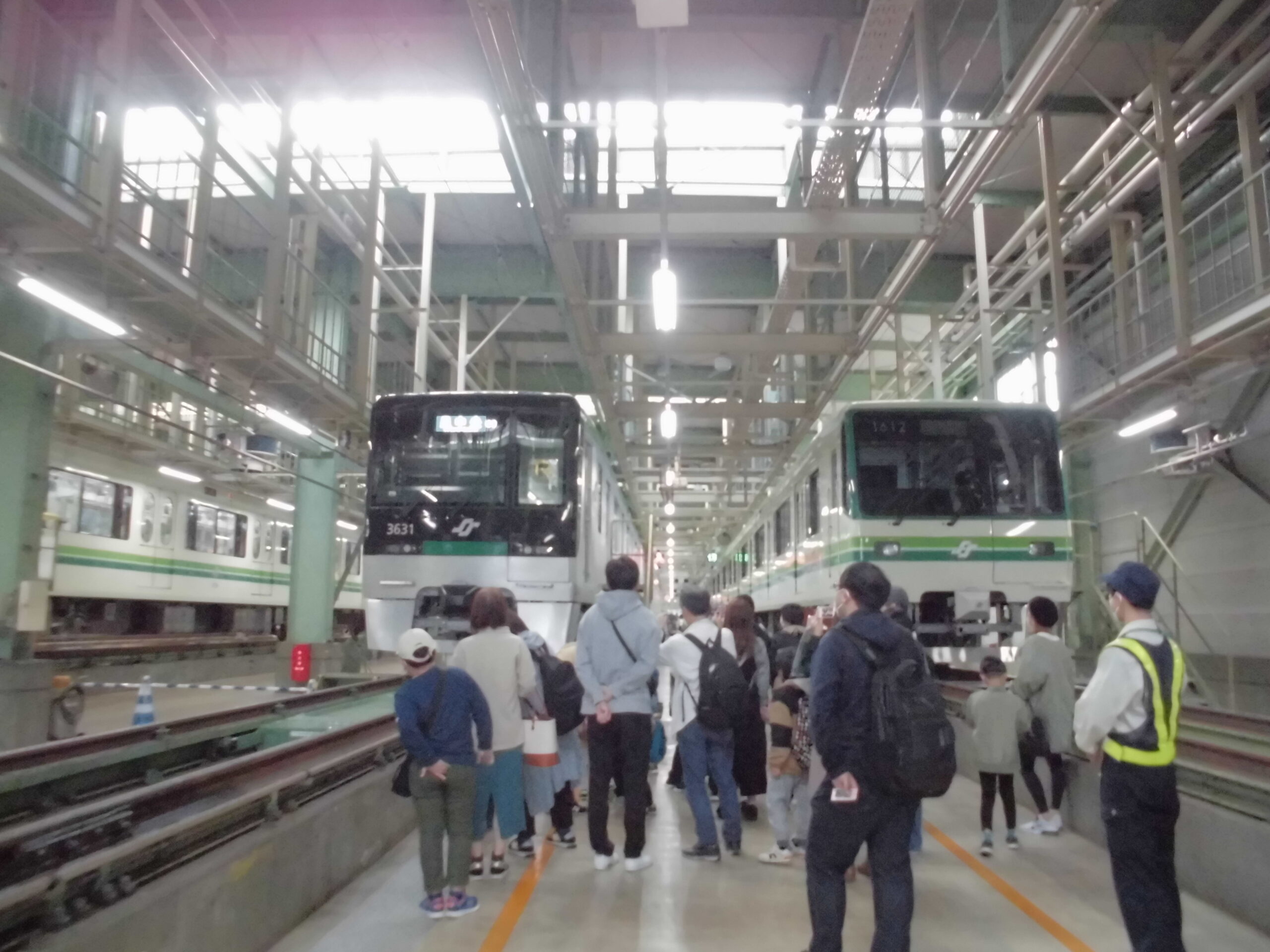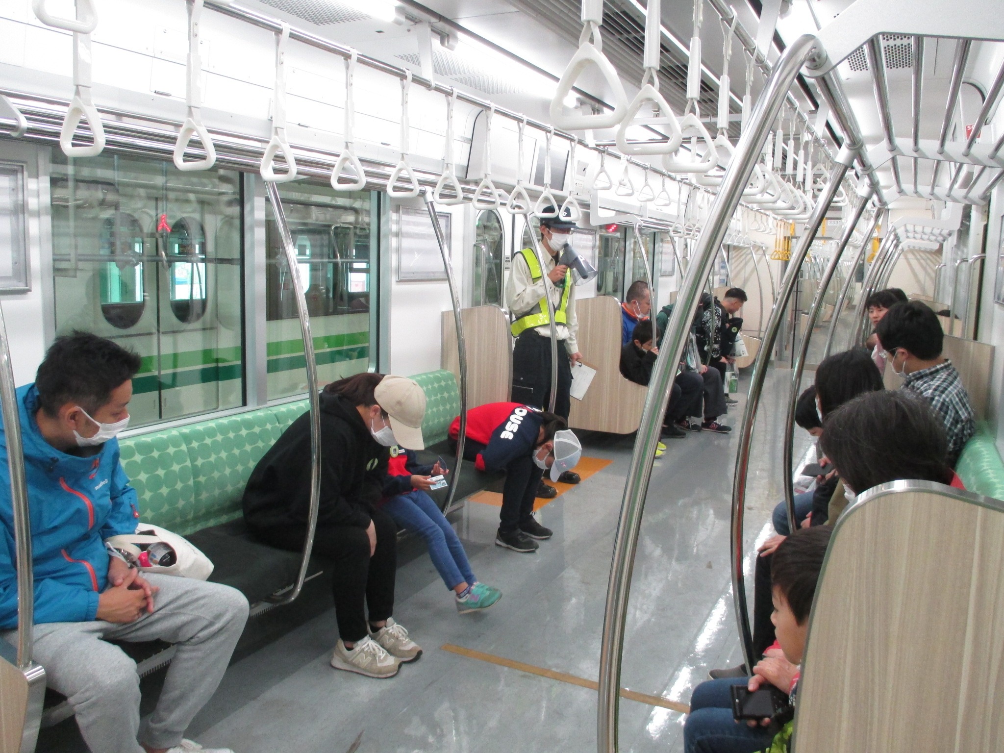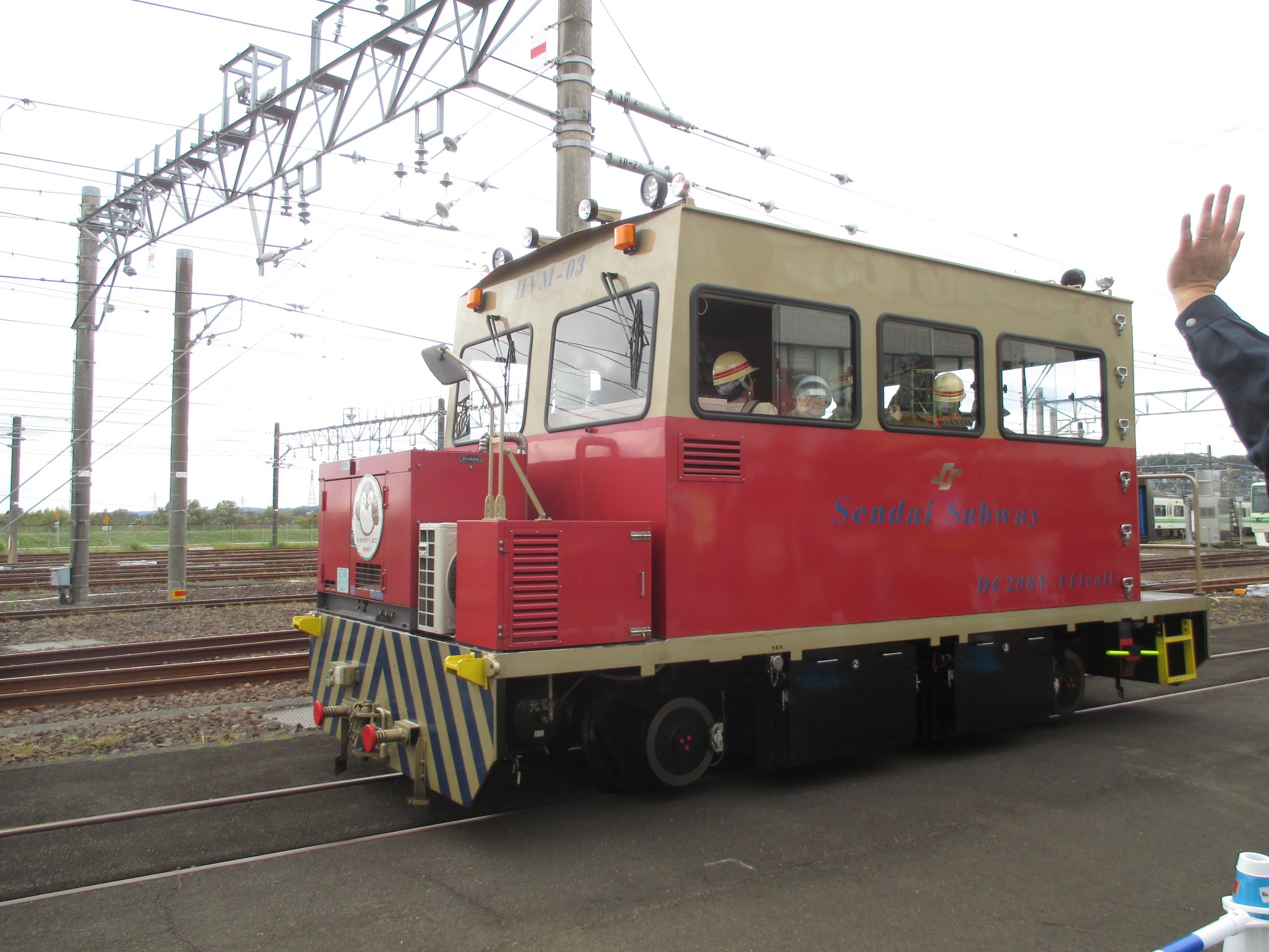 富沢駅から会場までを結ぶ地下鉄特別便「わくわくトレイン」に乗車!会場到着後は、乗車したまま車体が洗車される様子を体験しました。