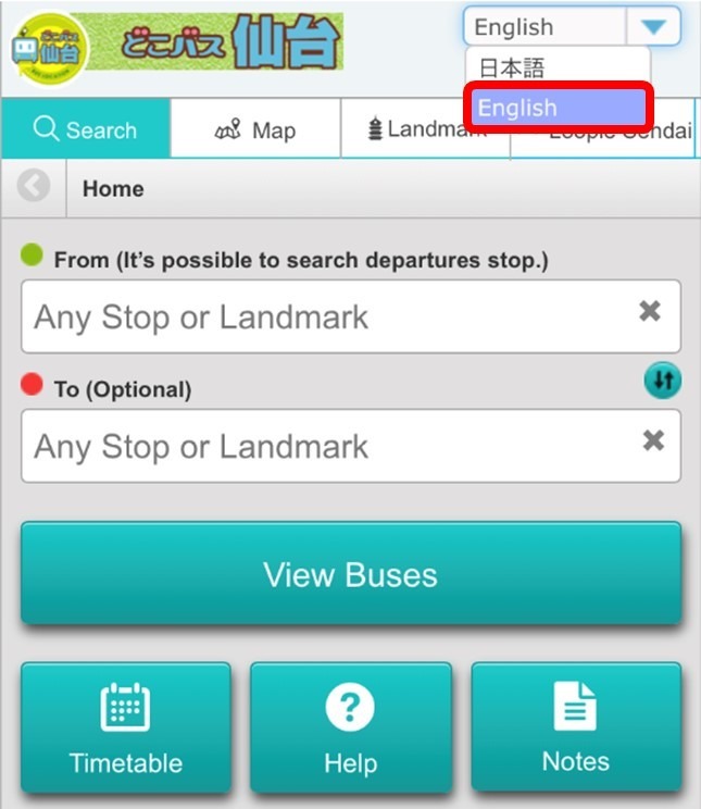 令和5年2月28日より、「どこバス仙台」は英語表示への切り替えが可能となりました。
