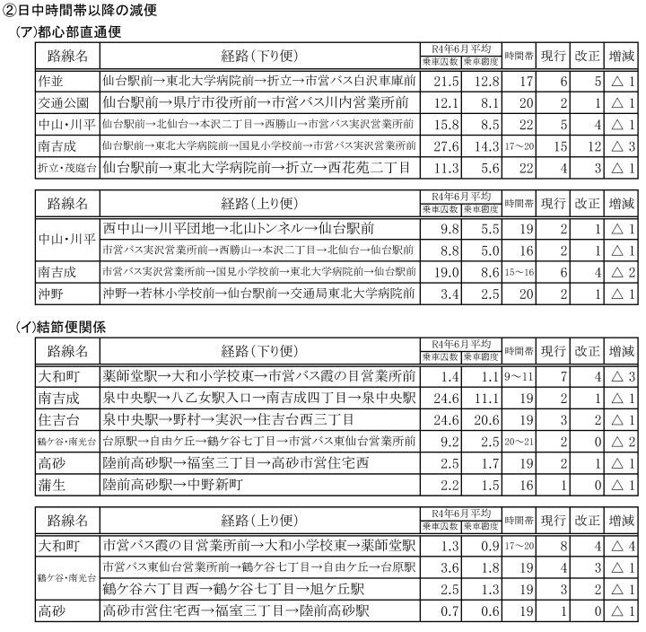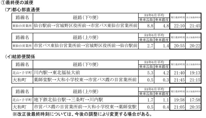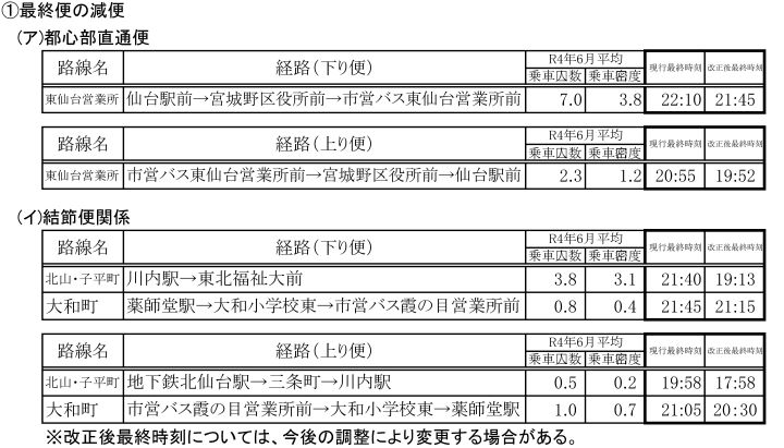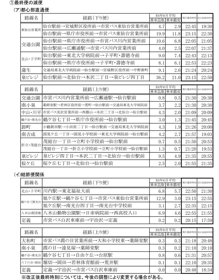 ・日中~深夜時間帯の便数調整(朝のラッシュ時間帯を除き、最終便を含めた20時以降の便を中心に利用状況に応じた減便を行います。)