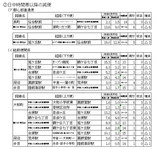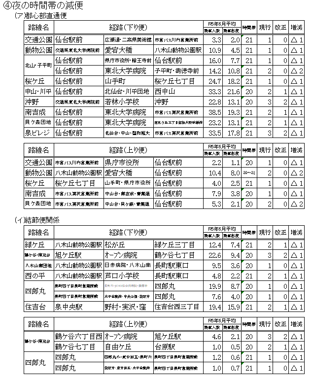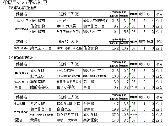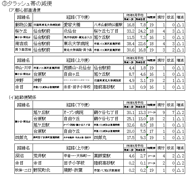 そのような中、交通局では、将来にわたる安定的な運営を確保し、市バス事業を公営交通として維持していくために、様々な改善策に取り組んでおり、今回のダイヤ改正もその一つとして実施いたします。