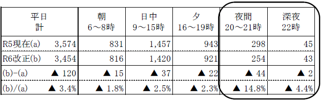 以上を踏まえ、令和6年4月ダイヤ改正では、次の考え方で便数調整を行います。