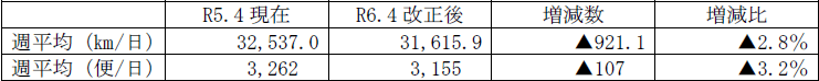 3 令和6年4月ダイヤ改正による週平均営業キロ・便数の変化