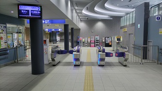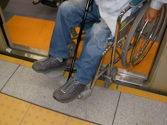 ![]() (車いす利用者が単独で乗降できる車両) | ![]() (全て幅広の自動改札口) |