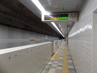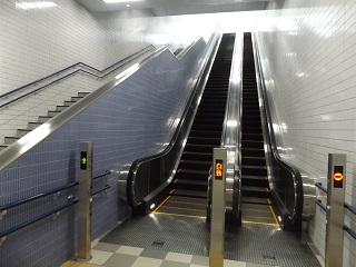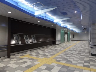 東側出入口への階段・上下エスカレーターです。 地下2階(改札階) 券売機、奥はトイレです。 地下3階(ホーム階)です。 引き続き、案内サイン等整備を進めていきます。
