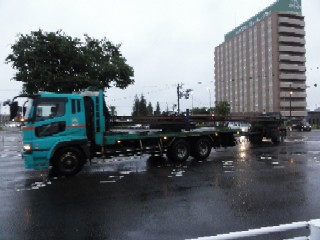 まくらぎを現場に運んできた様子です。(青葉山駅)
