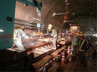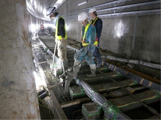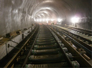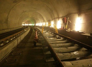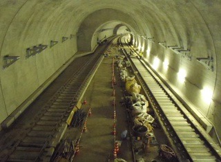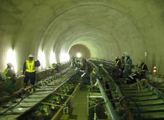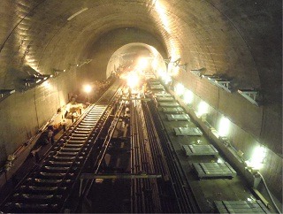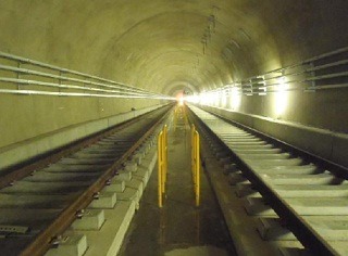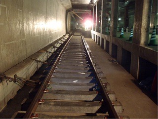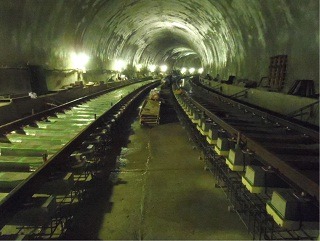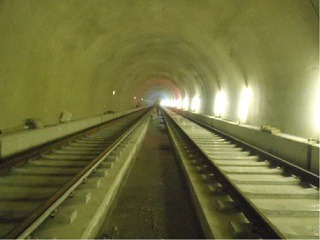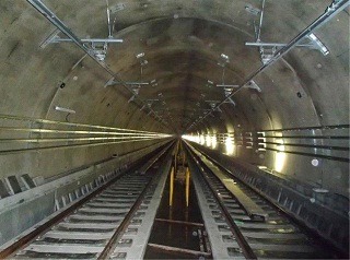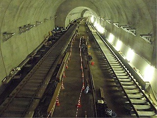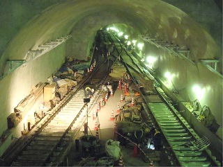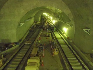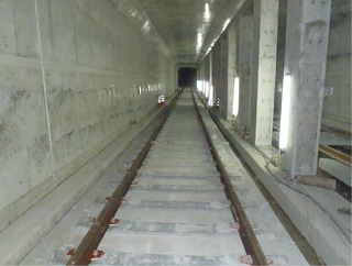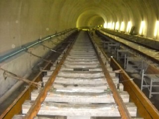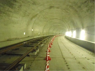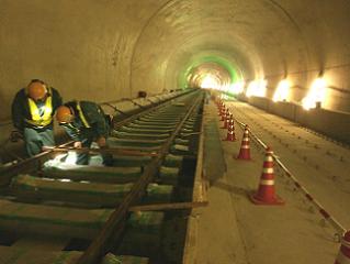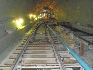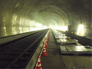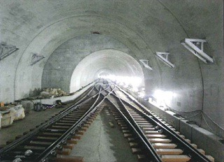 ![]() 八木山トンネルでのレール敷設の状況です。 | ![]() 亀岡トンネルでのレール敷設の状況です。 | |
