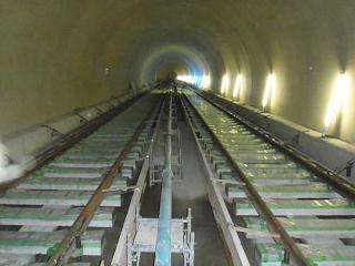 ![]() 扇坂トンネルでのレール敷設の状況です。 | ![]() 扇坂トンネルでのレール敷設の状況です。 | |