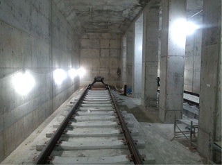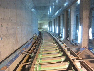 ![]() 青葉山駅のホーム付近の状況です。 | ![]() 亀岡トンネル内のレール敷設の状況です。 | |