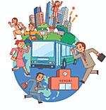朝の混雑時にたくさんの人がこの方式で通勤・通学するようになれば,道路の混雑も緩和されるとともに,地球環境にもやさしい交通になります。