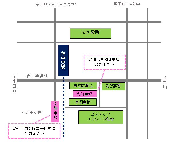 ※泉区役所庁舎北側駐車場は、泉区役所の建替えに伴い令和5年9月29日をもって終了しました。